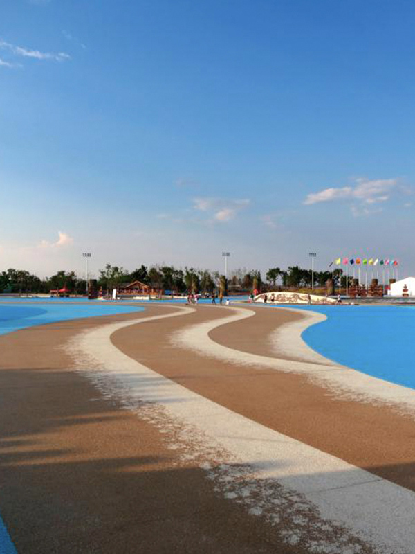 礫石聚合物地坪是精致骨料、琉璃石與水泥、專用膠結料按一定比例拌和,播撒涂抹在現(xiàn)澆混凝土基層上,然后處理表面,露出砂礫細骨料原貌的一種裝飾做法。礫石路面原材料顏色豐富,滿足個性化定制,可做出各種裝飾圖案,被廣泛應用于室外景觀造型,游樂場、水上世界等主題樂園項目,是裝飾混凝土國內應用新技術。